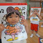 自分たちで好きなお面を選んで顔ハメをしていました!!