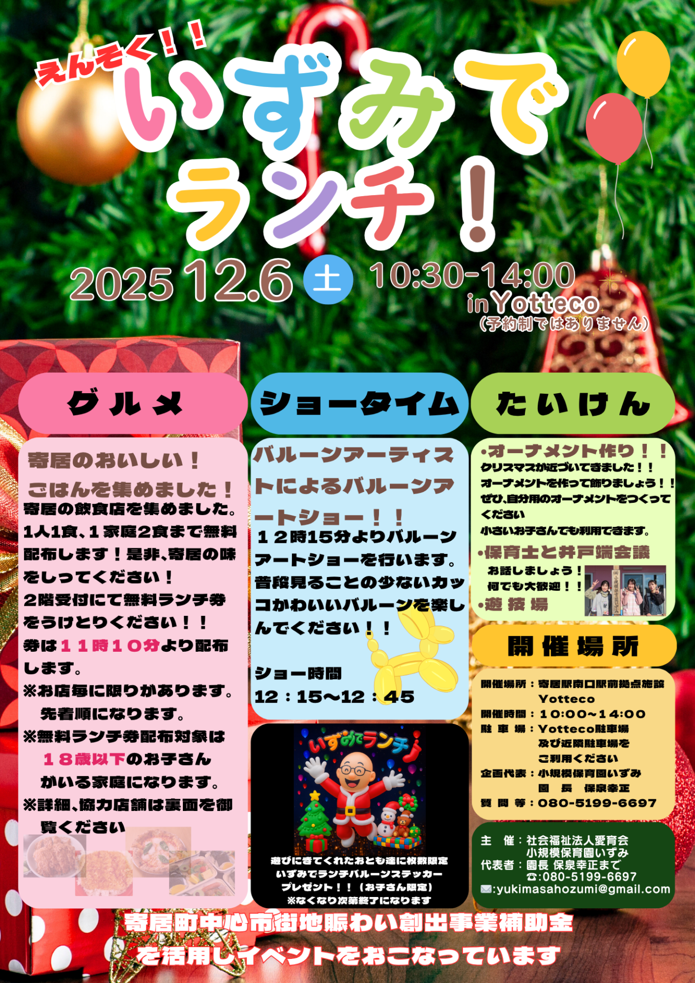 令和7年12月6日(土)に「えんそく!いずみでランチ!」を開催します!
