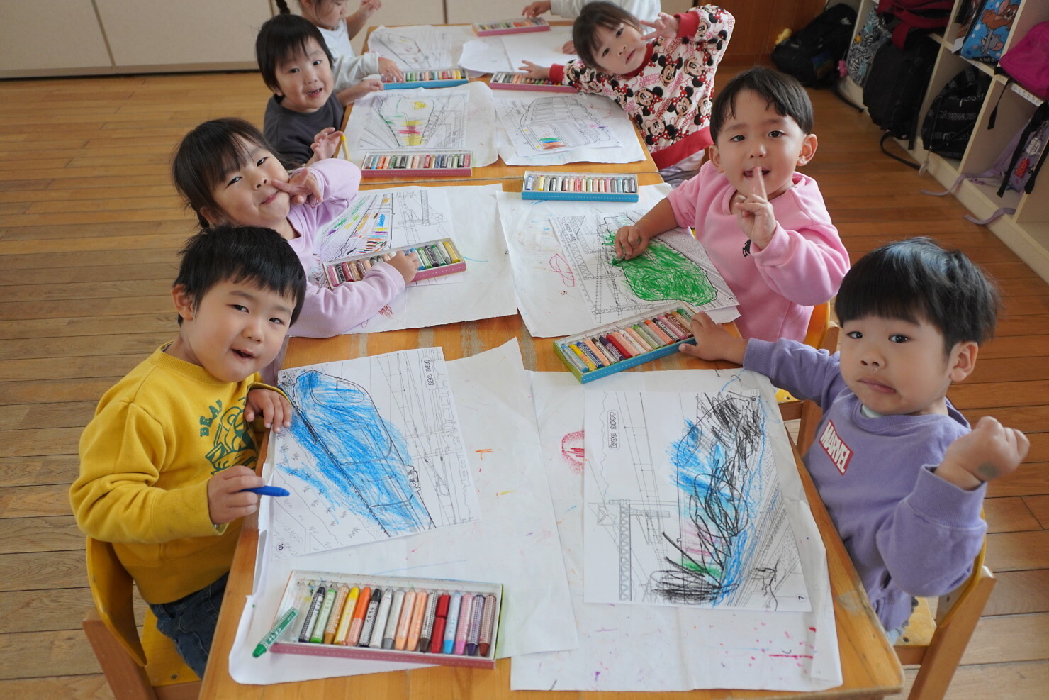 「カラフルな電車!」「電車乗ったことあるよ!」「はやぶさは緑だよね!」など子ども同士の可愛い会話が聞こえてきました