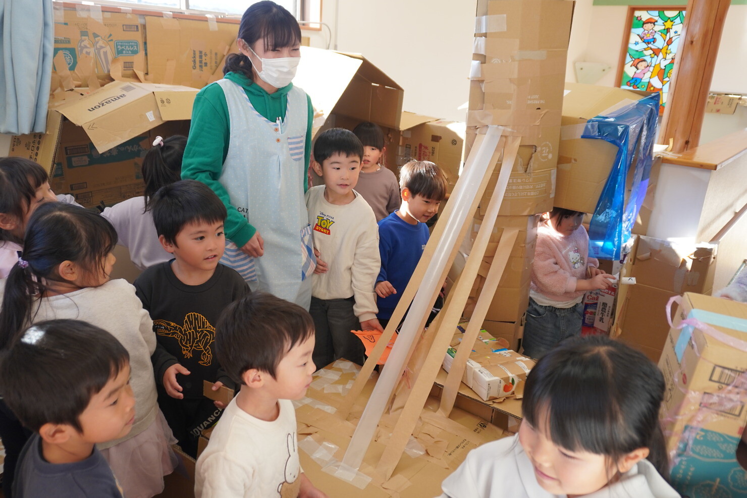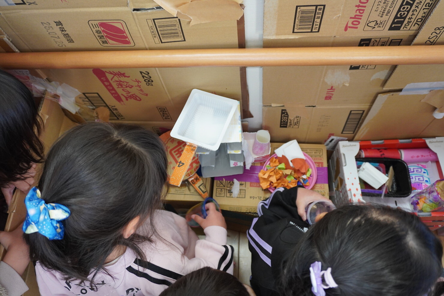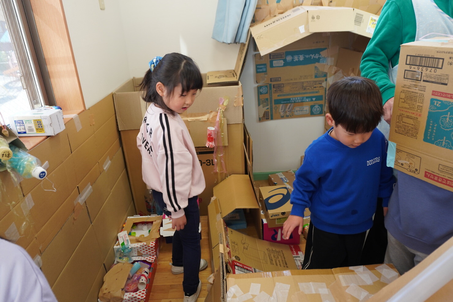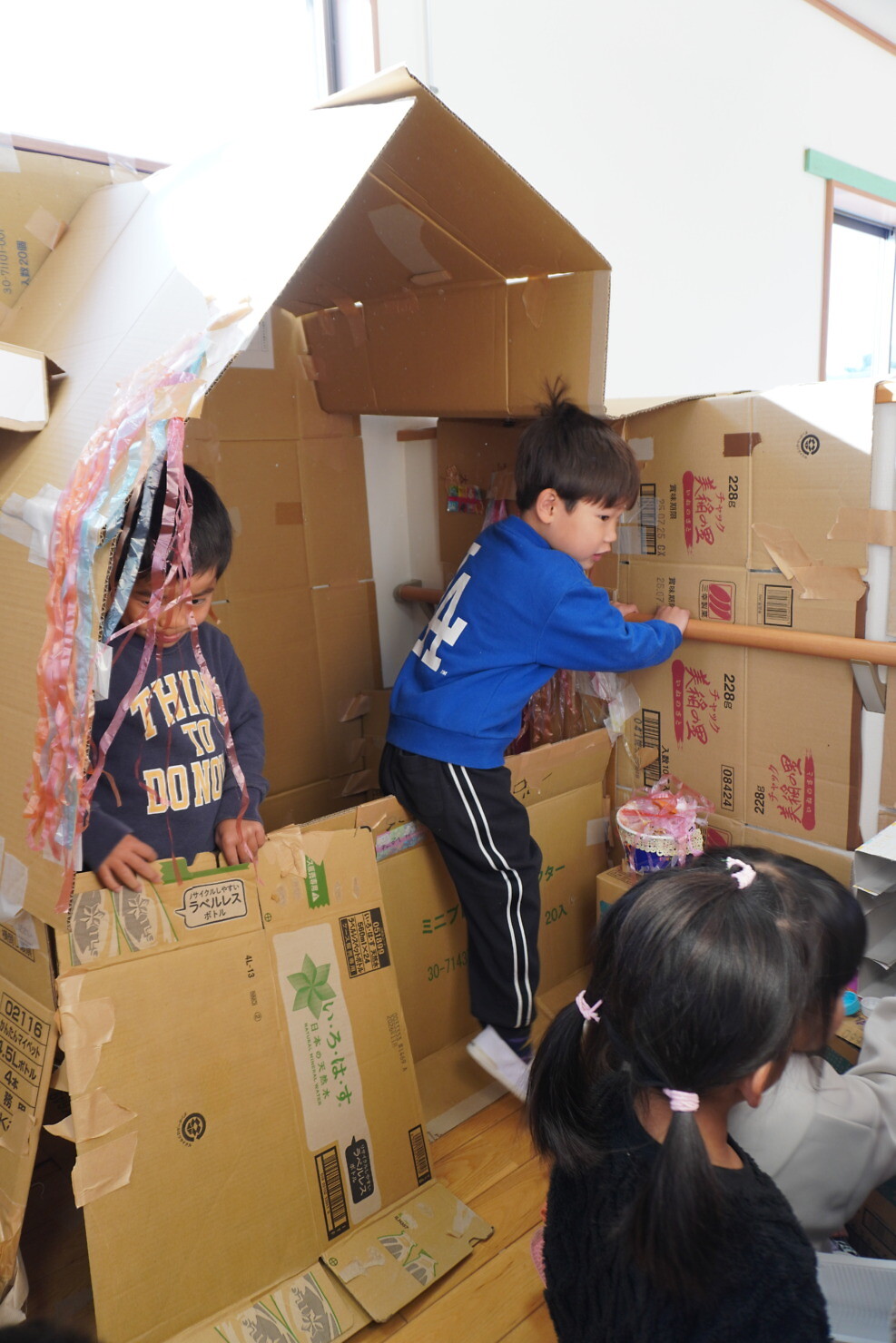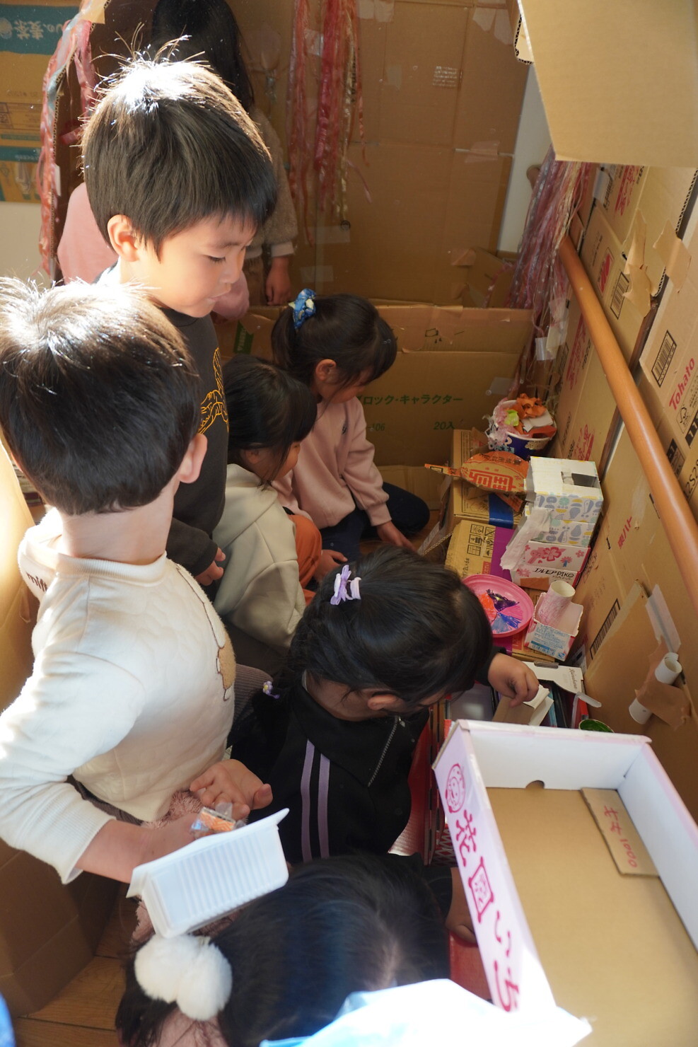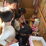 今日はひまわり組が作った秘密基地にゆり組さんが遊びに来てくれました