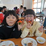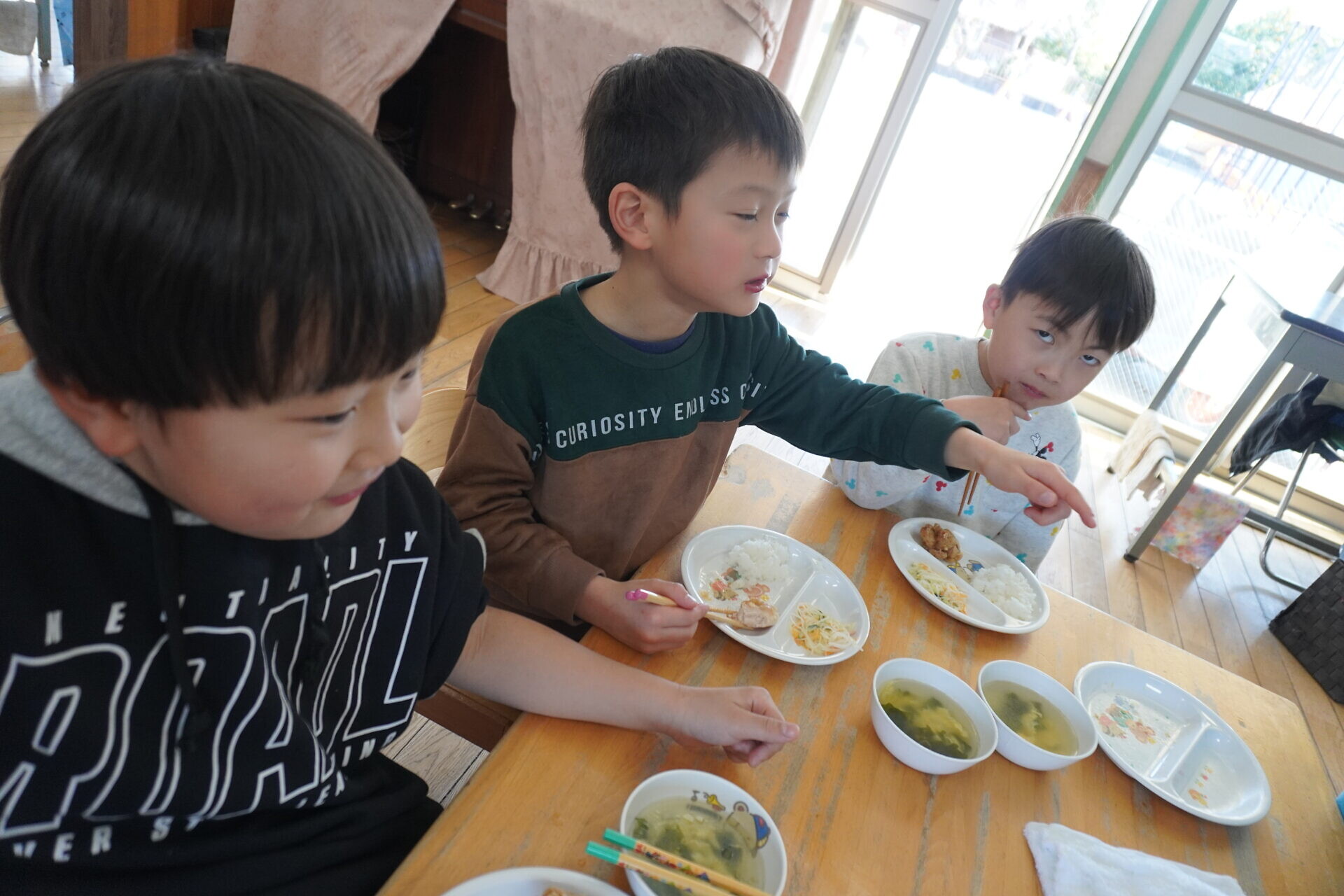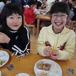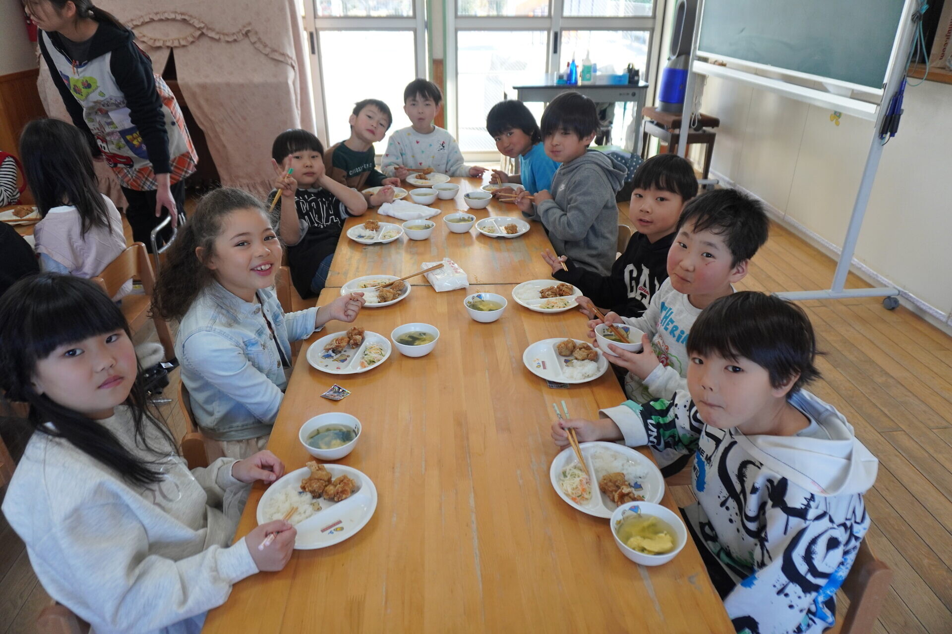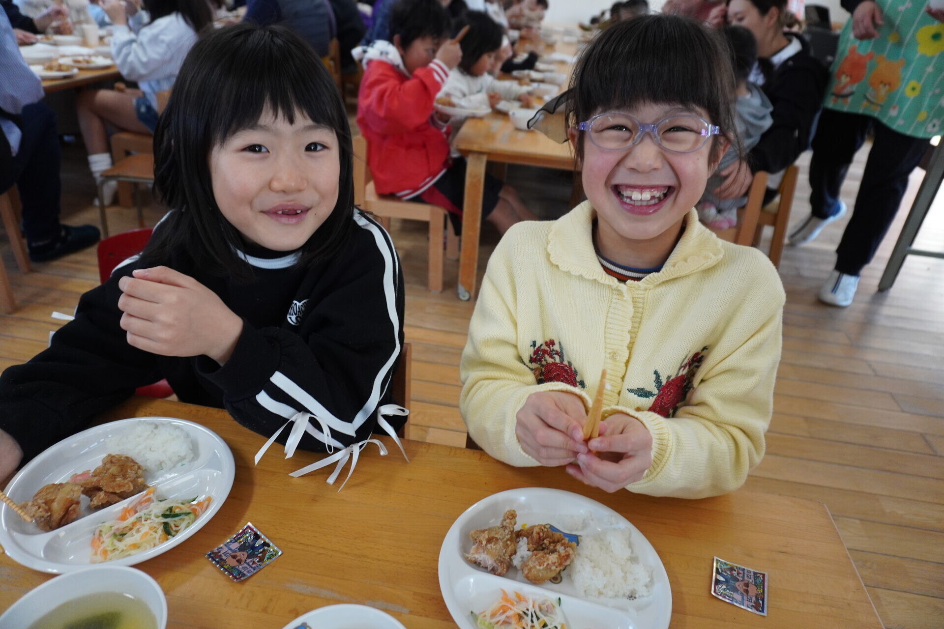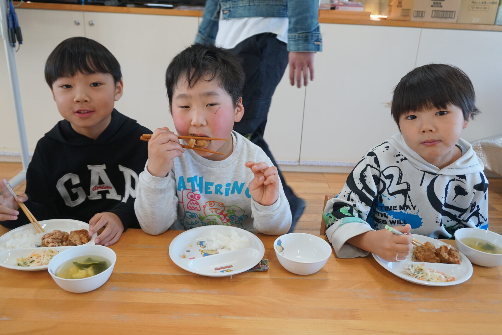 今回のメニューはみんなが大好きだったご飯、唐揚げ、シルバーサラダ、卵スープ、いちごでした