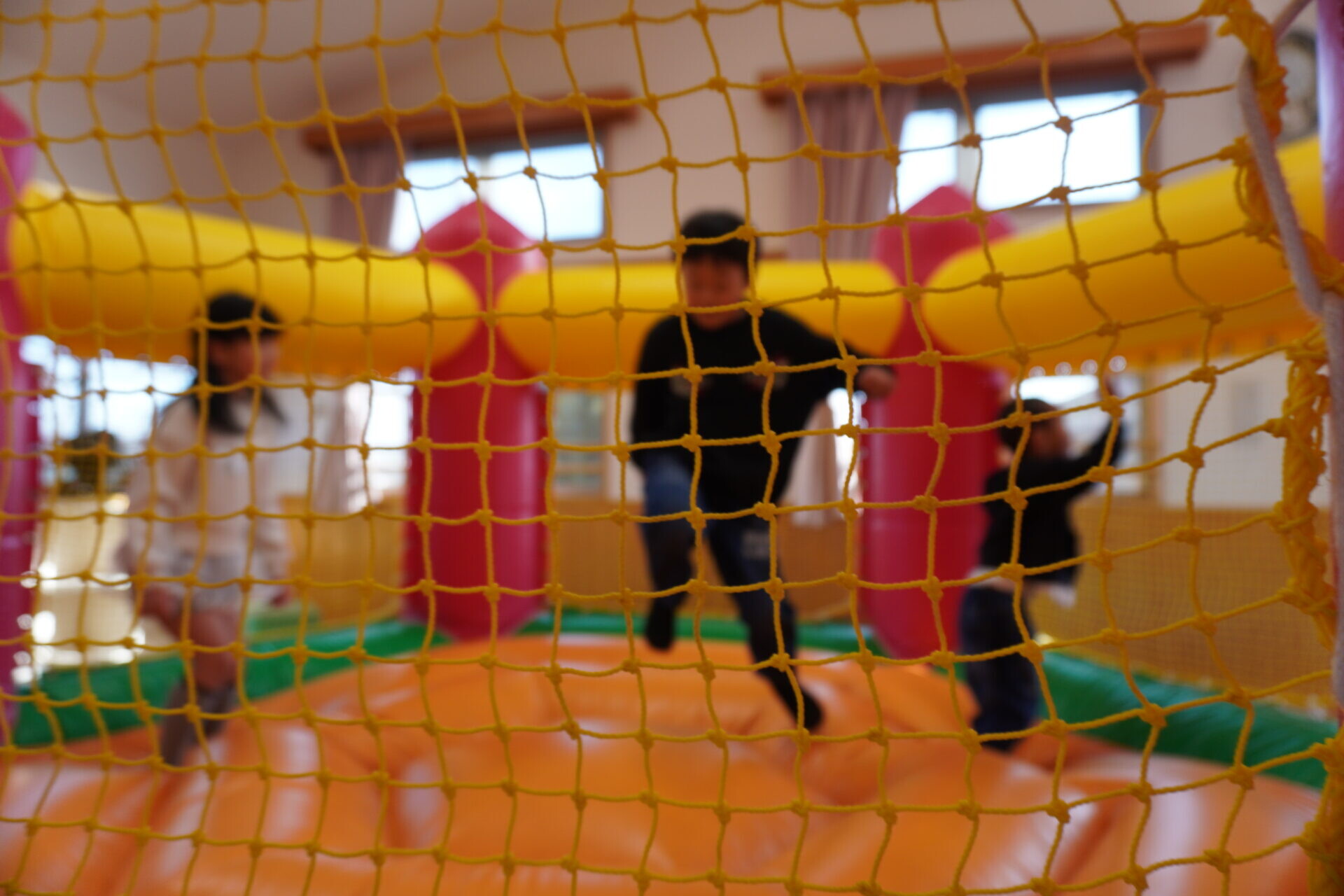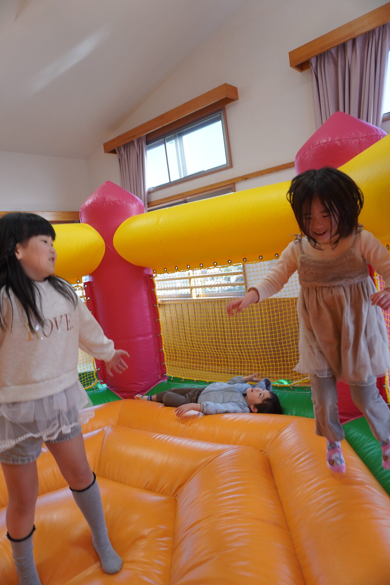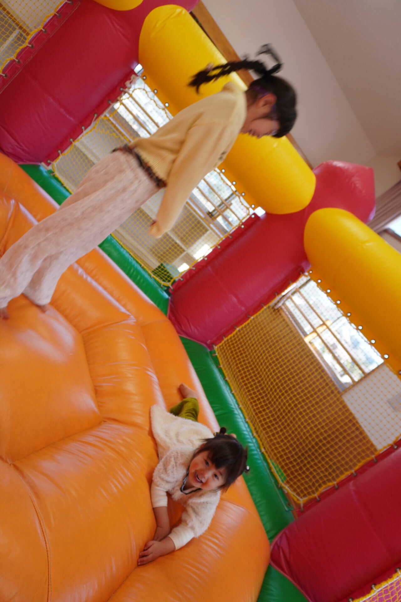 ランチタイムまでは園庭やトランポリンで遊びました!