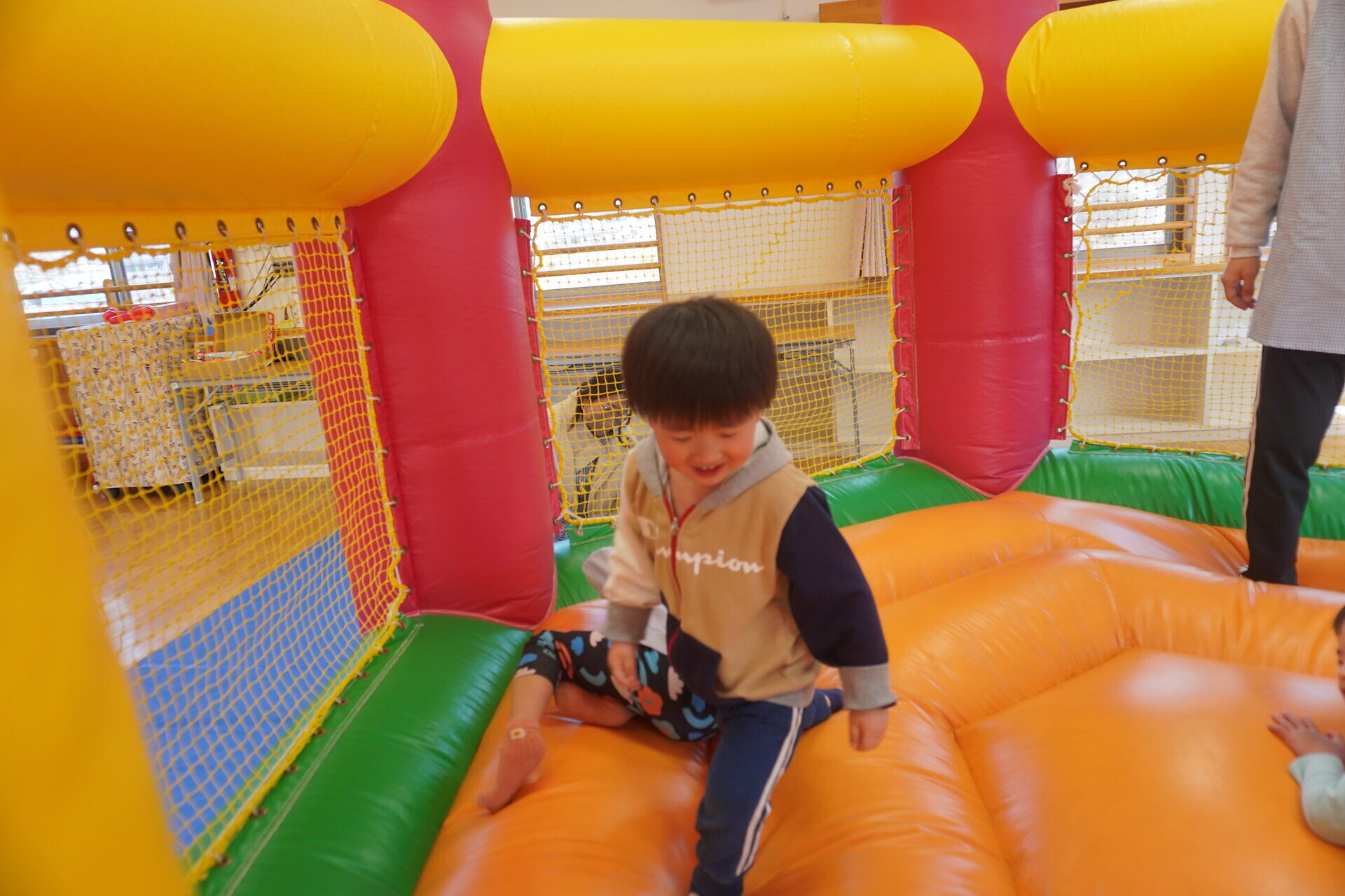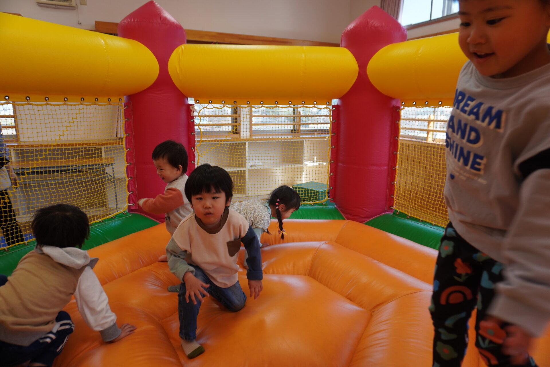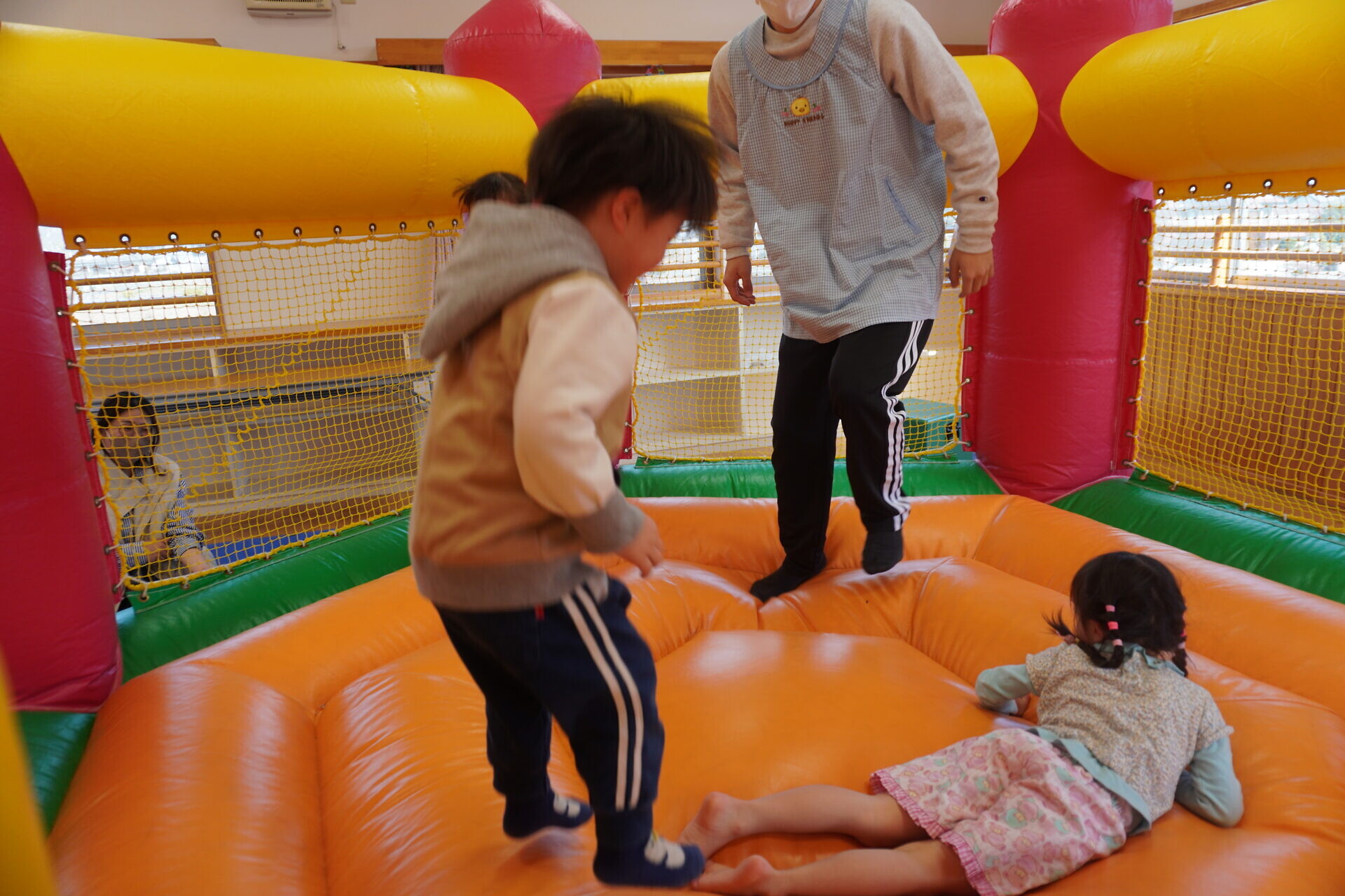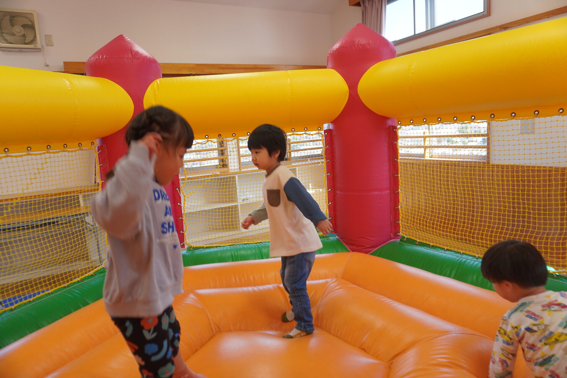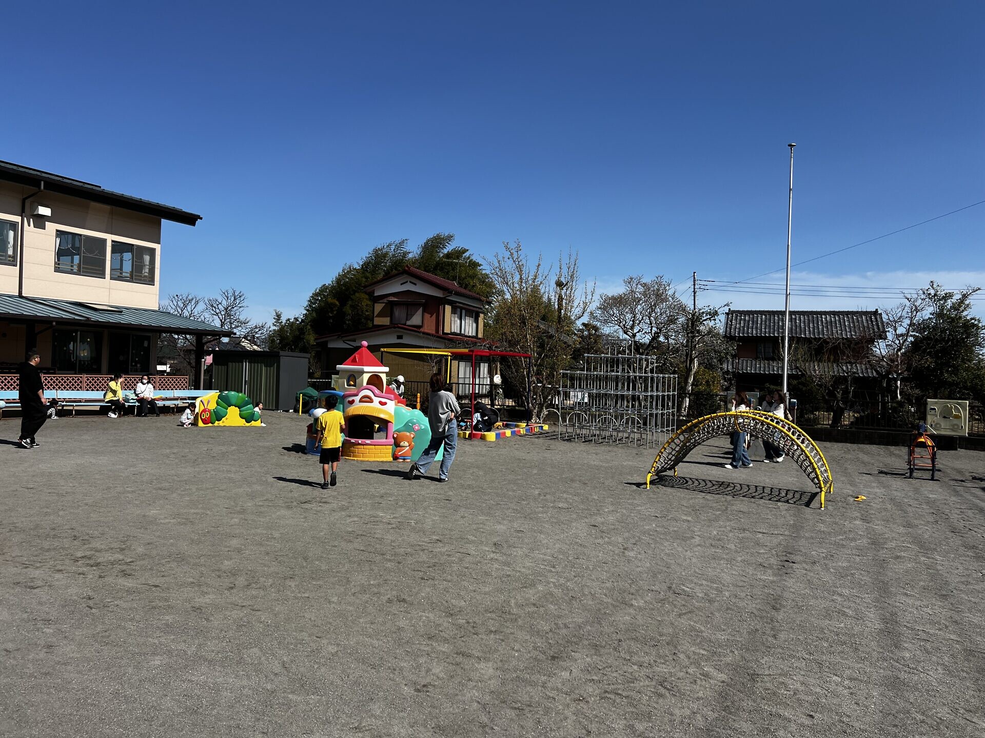 ランチタイムまでは園庭やトランポリンで遊びました!!