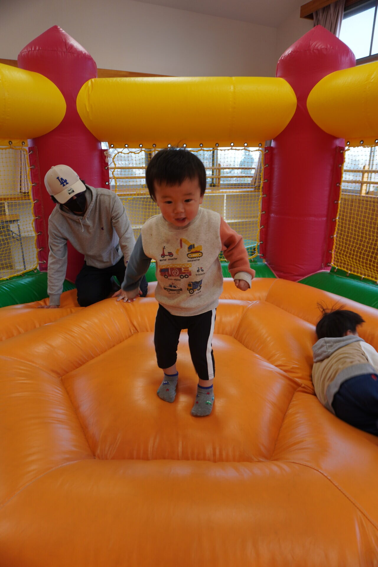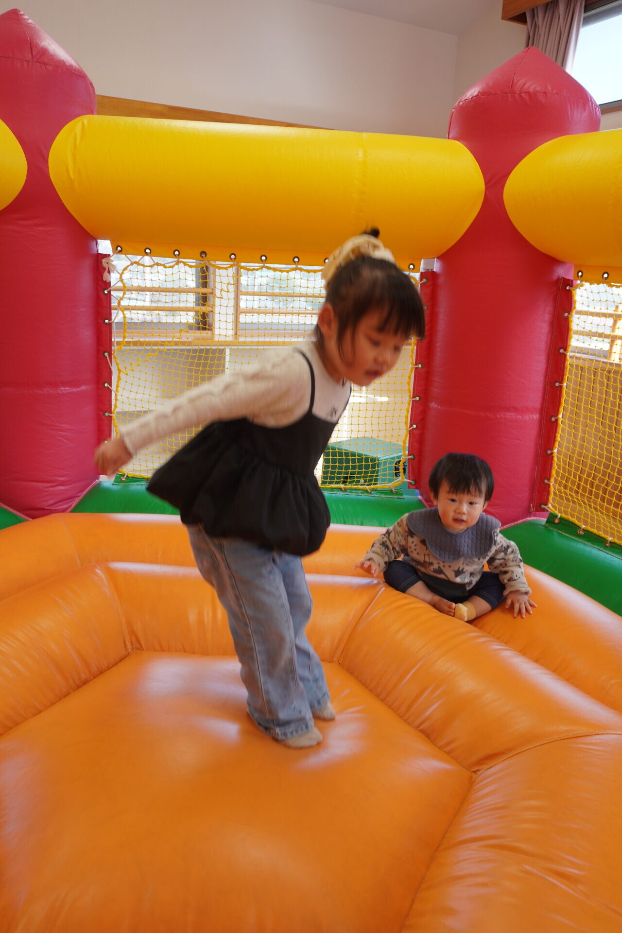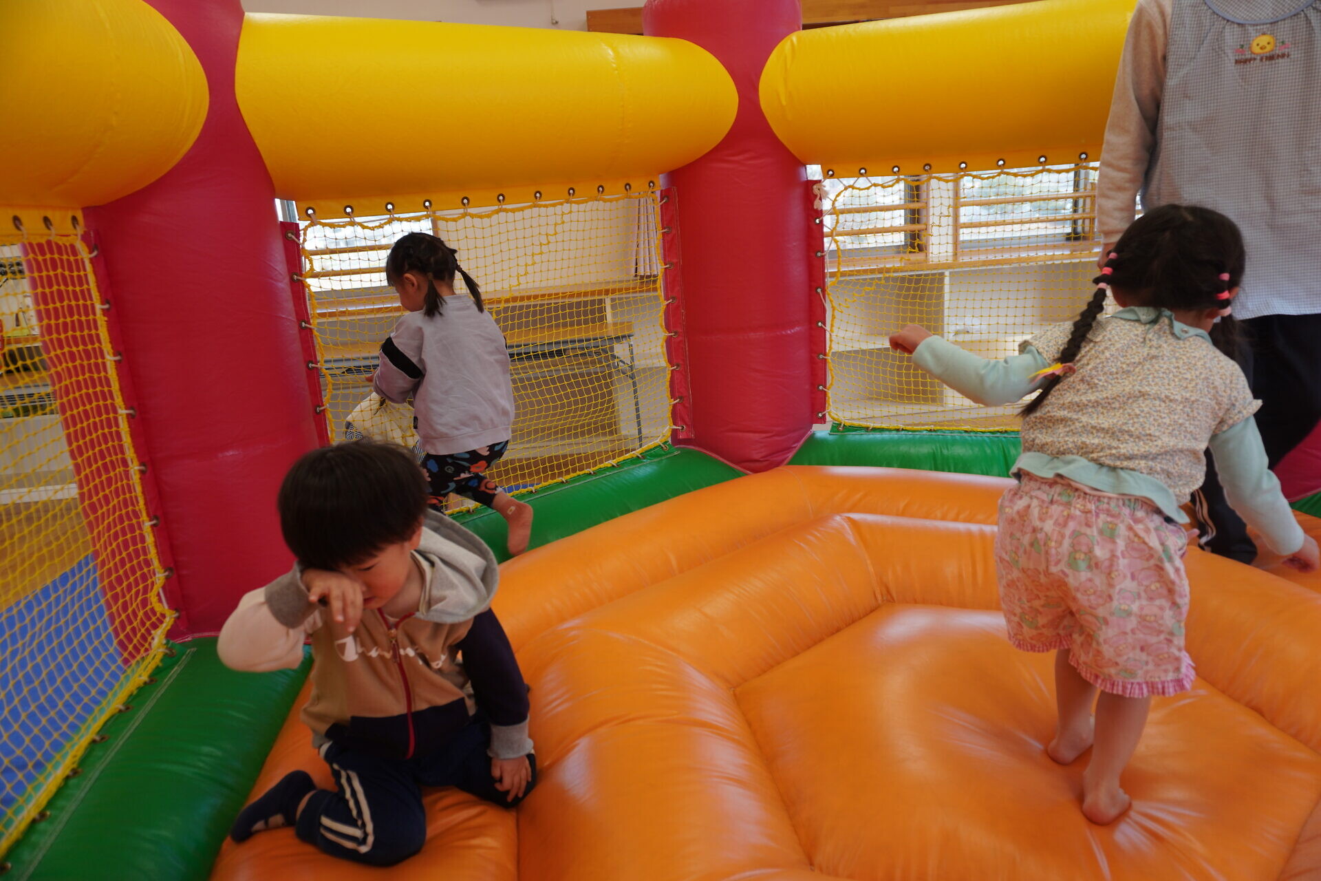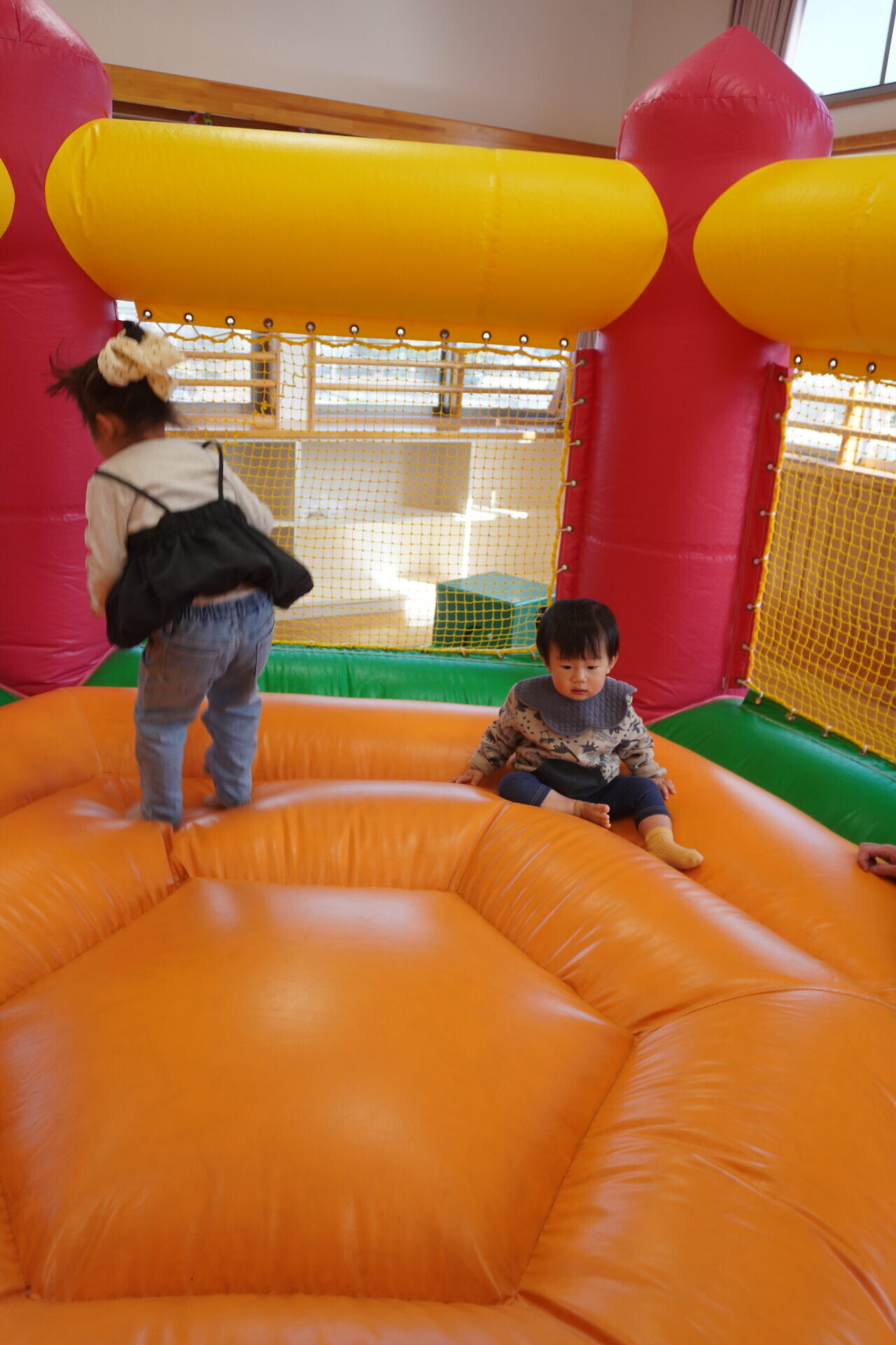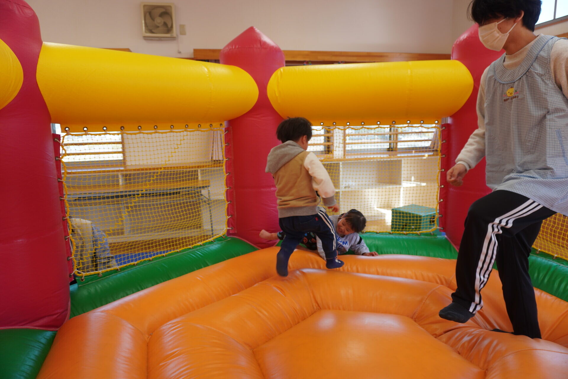 ランチタイムまでは園庭やトランポリンで遊びました!!