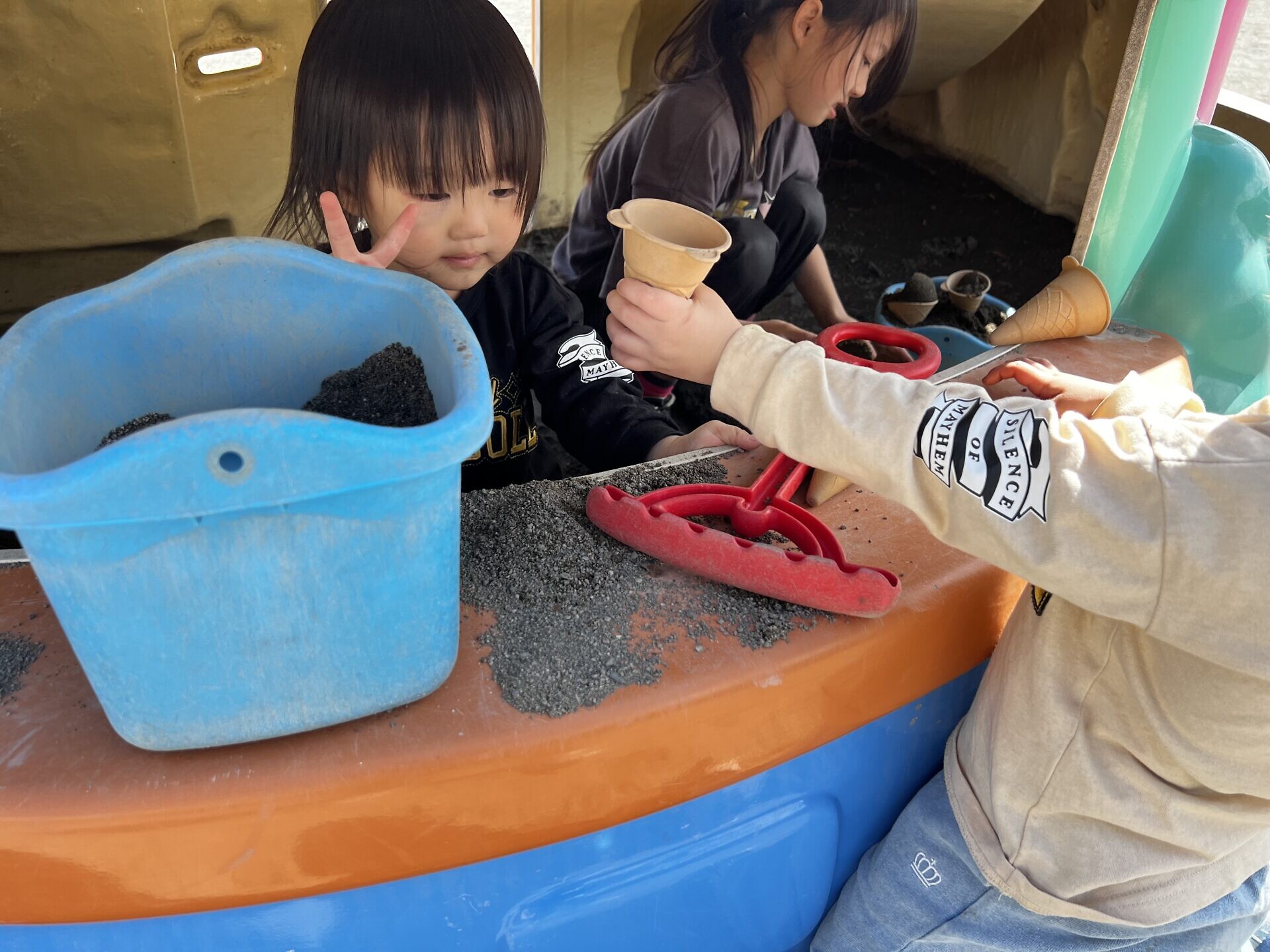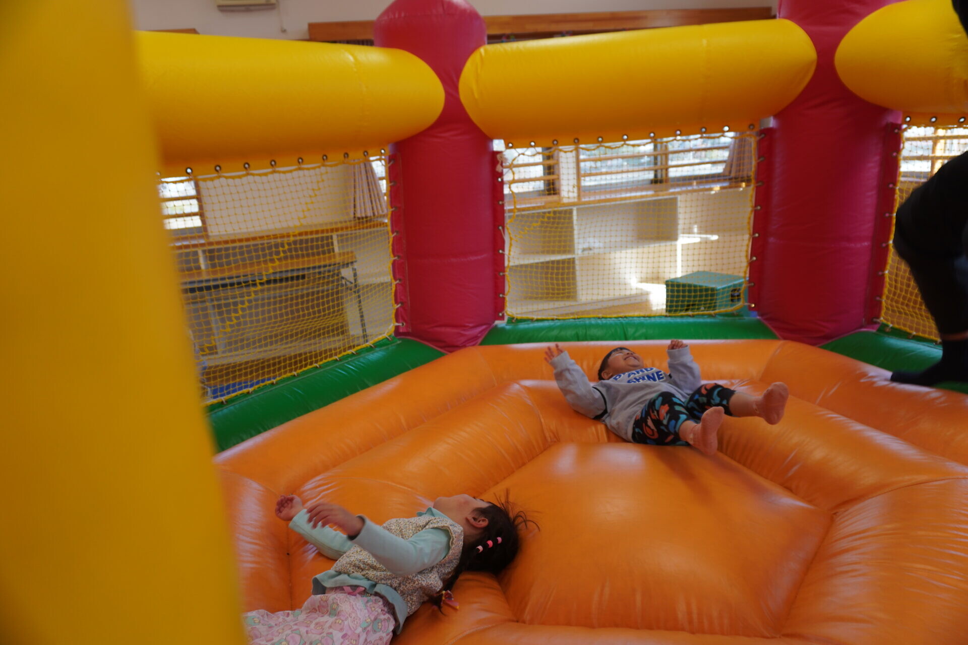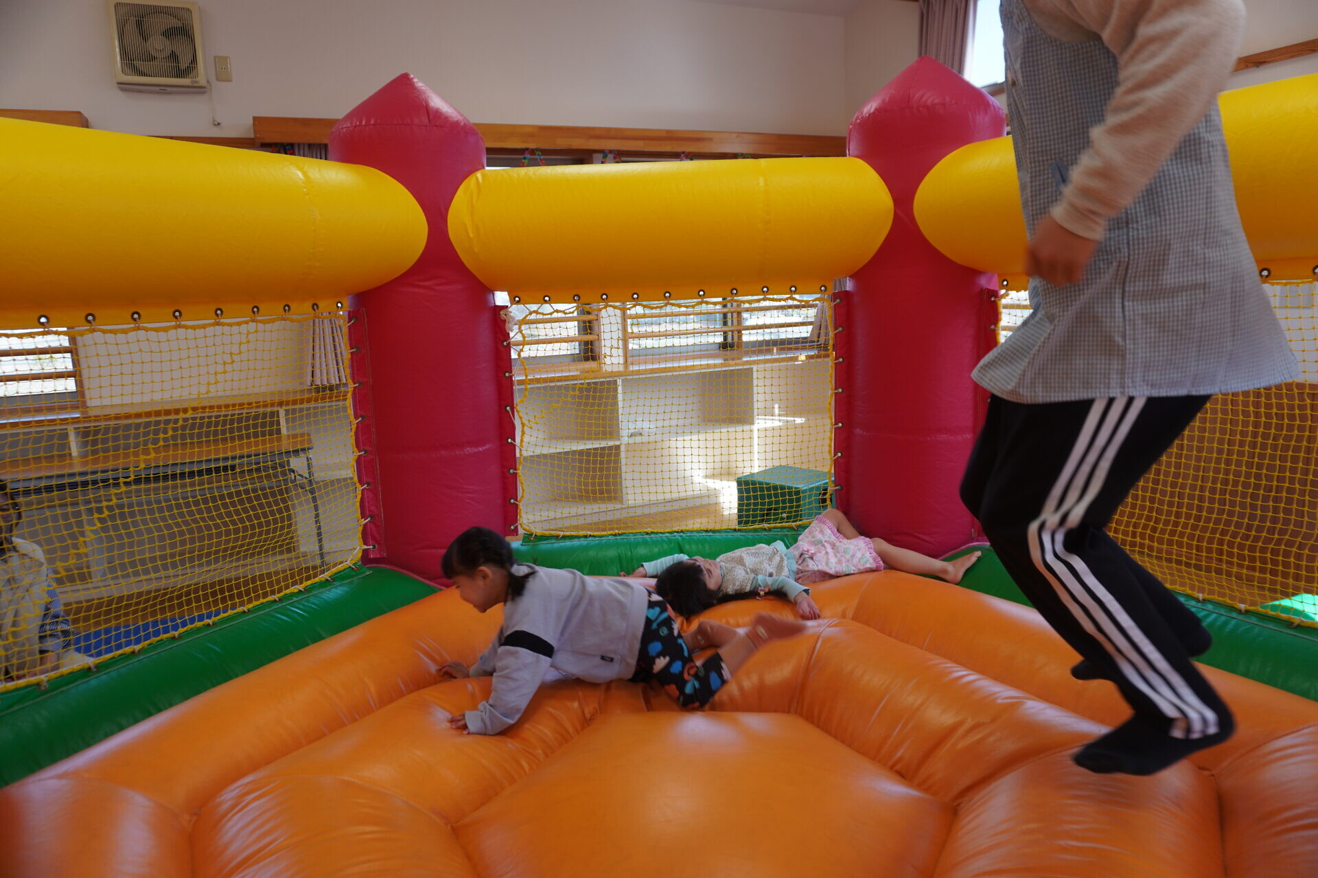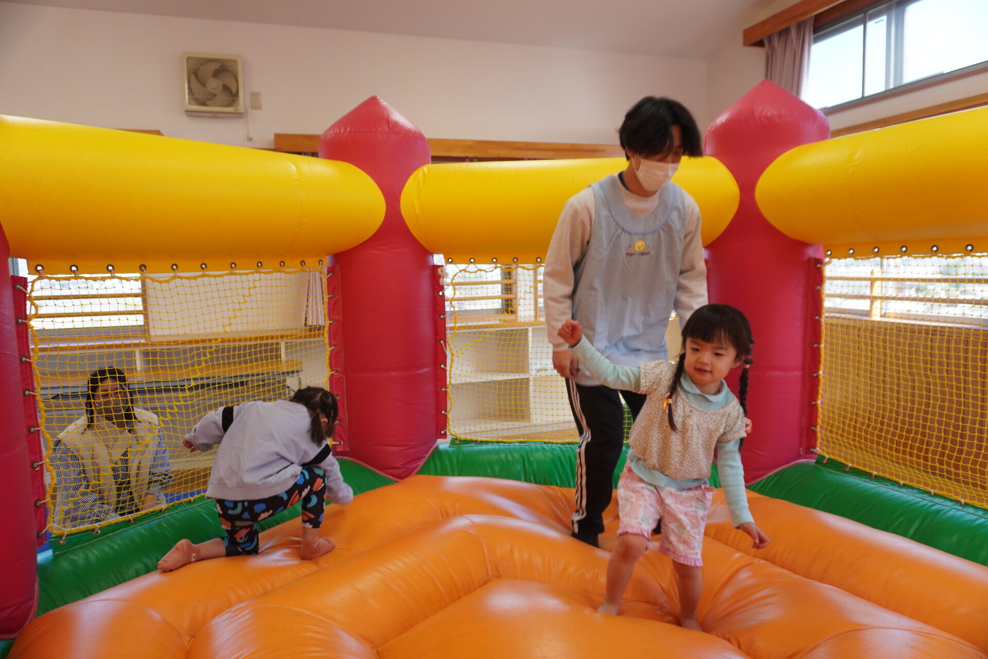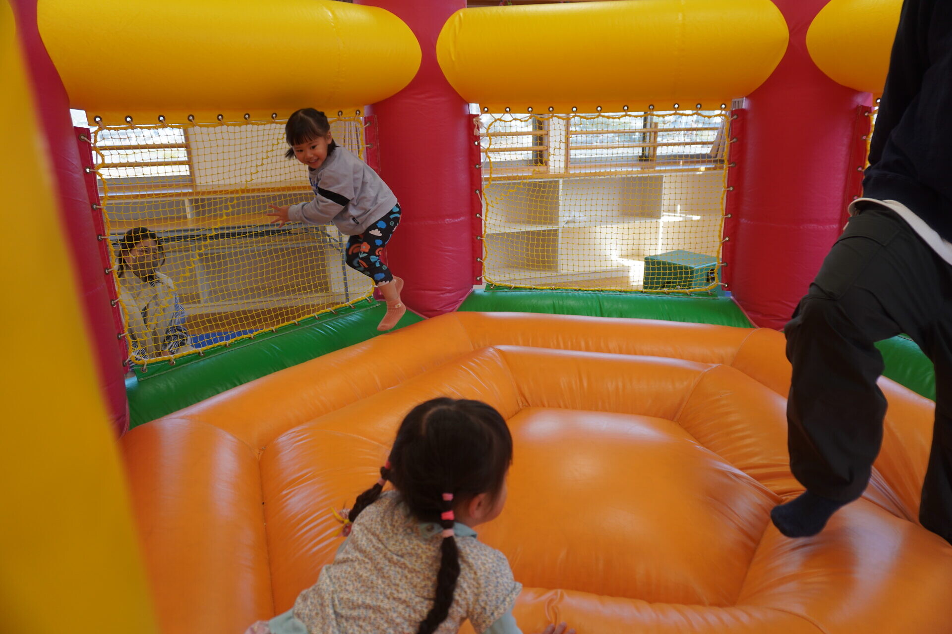 ランチタイムまでは園庭やトランポリンで遊びました!!