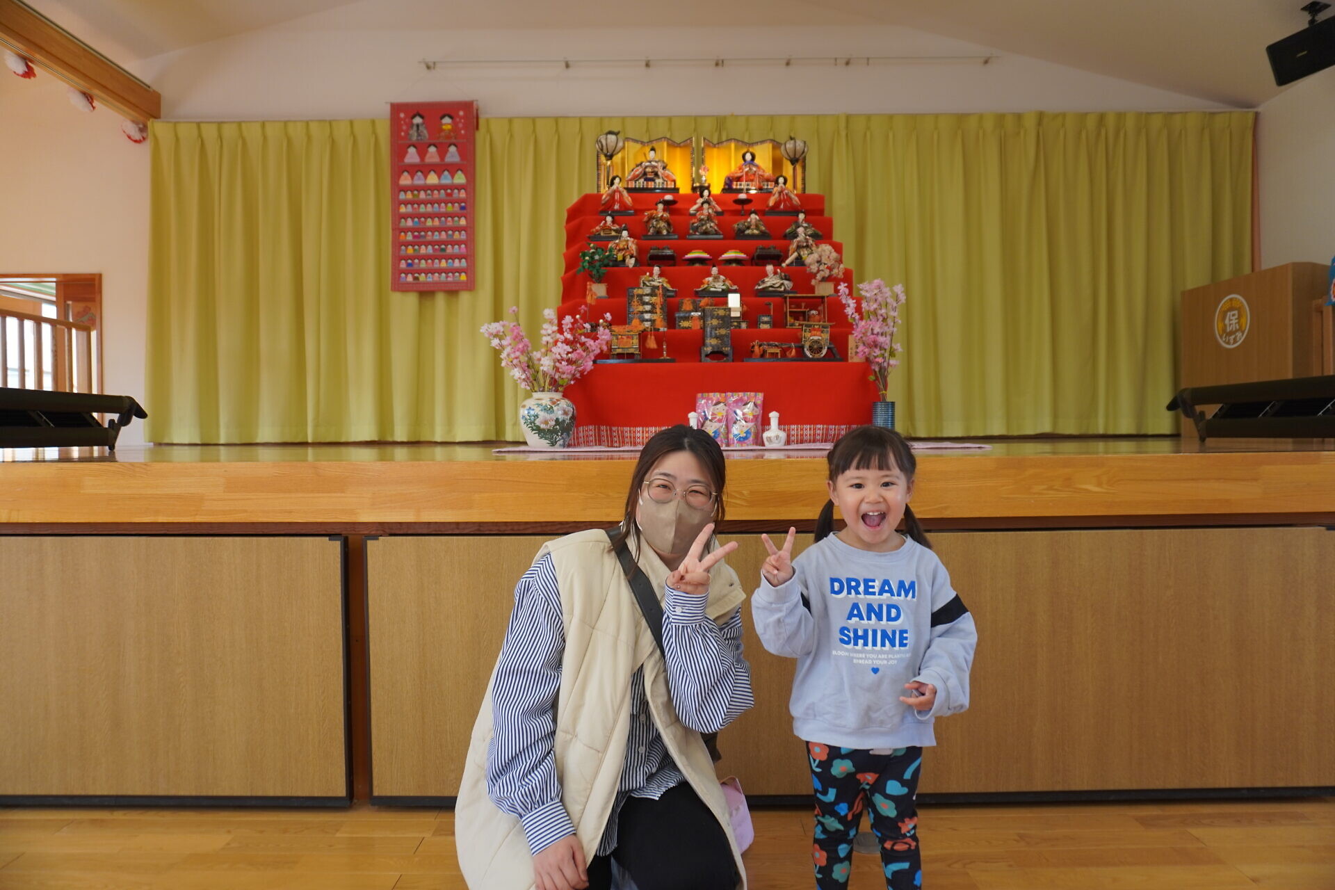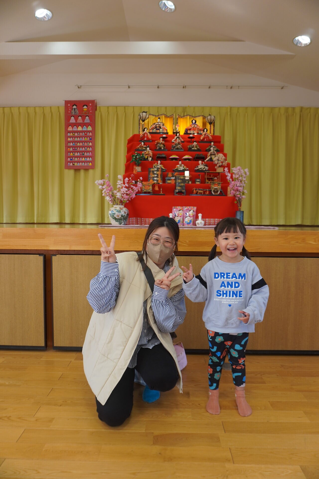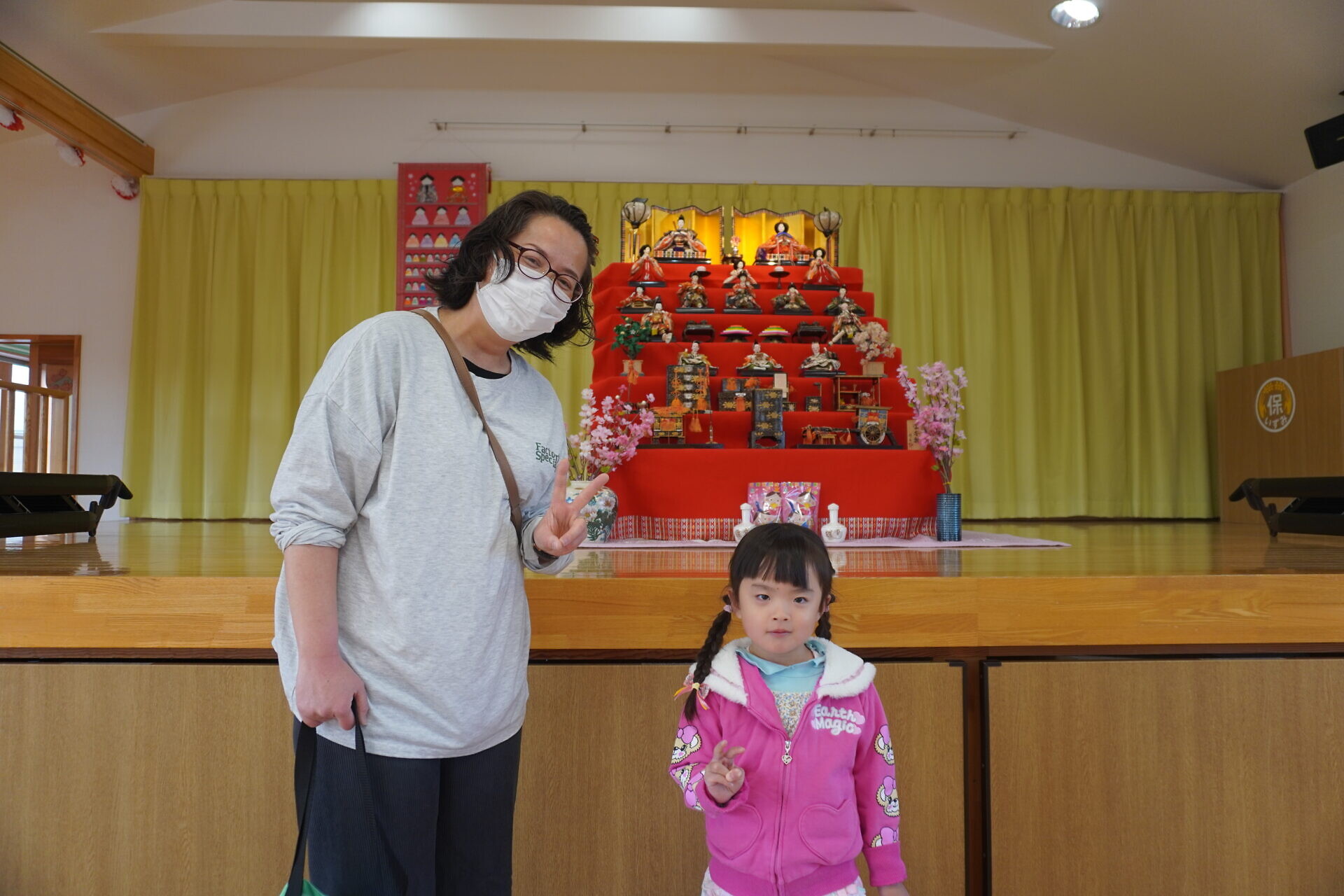 また、ひな祭りが近いということもあり保育園でだしていたおひなさまも直接みてもらう事が出来ました!!