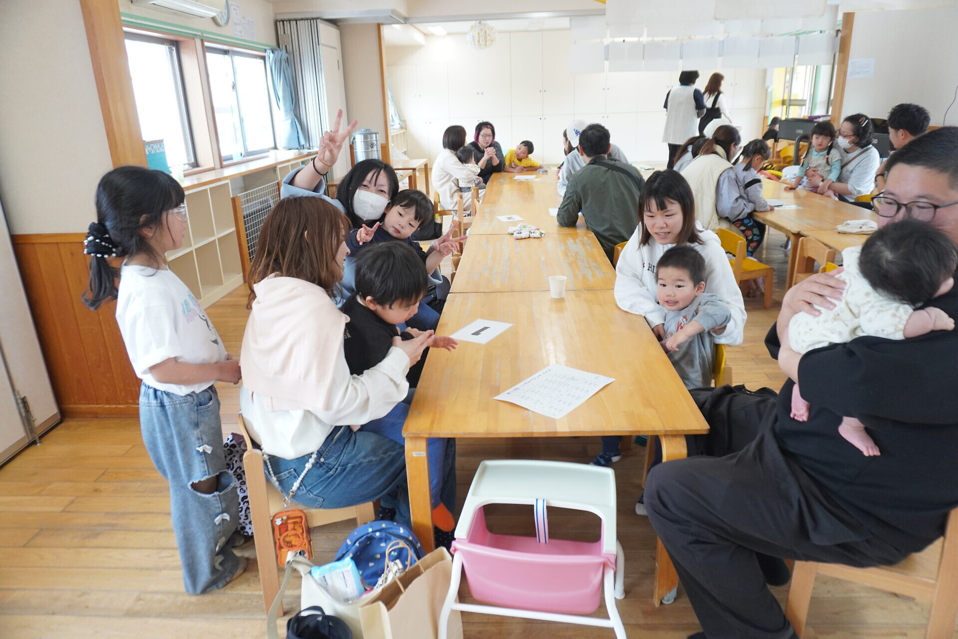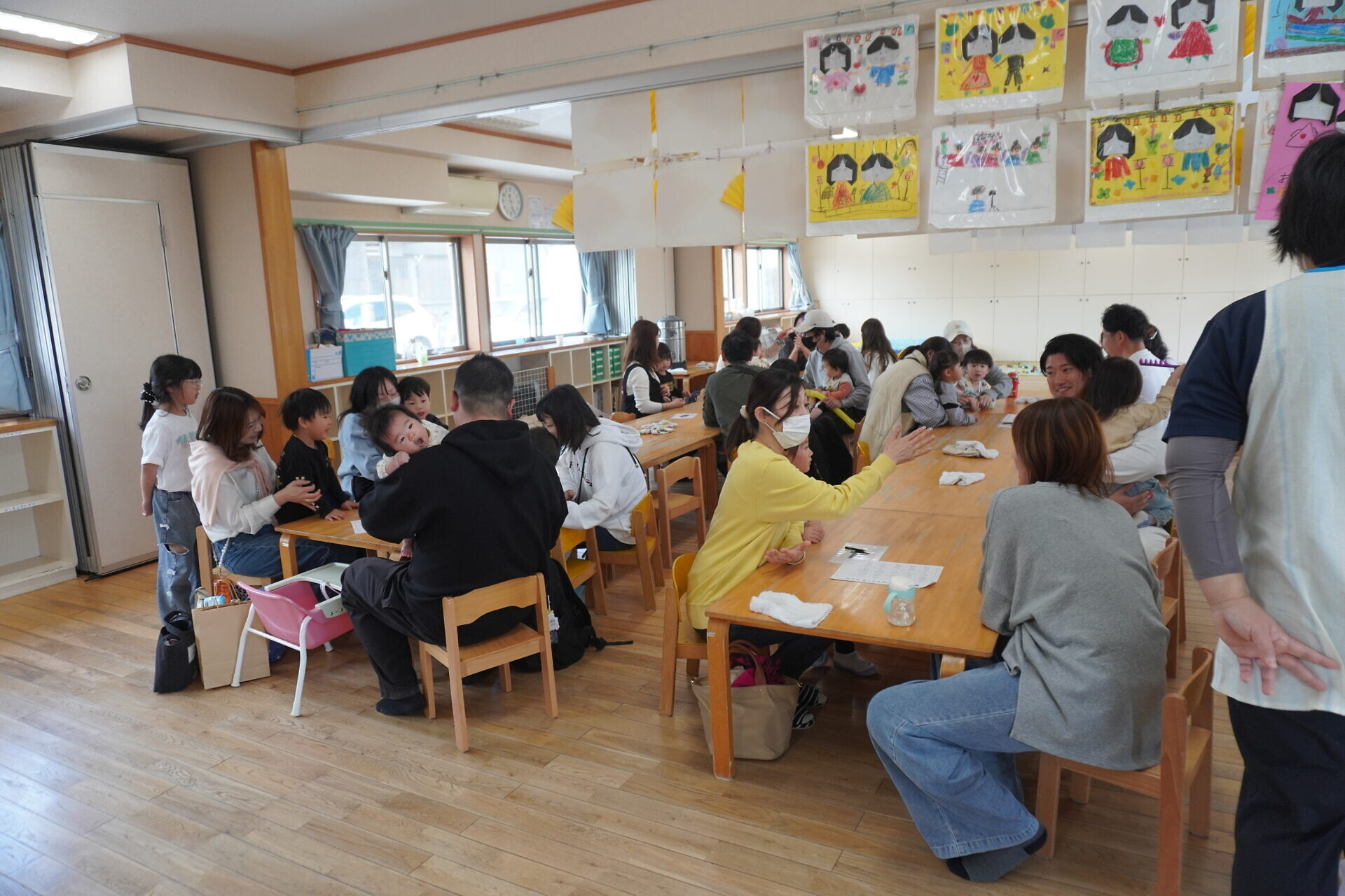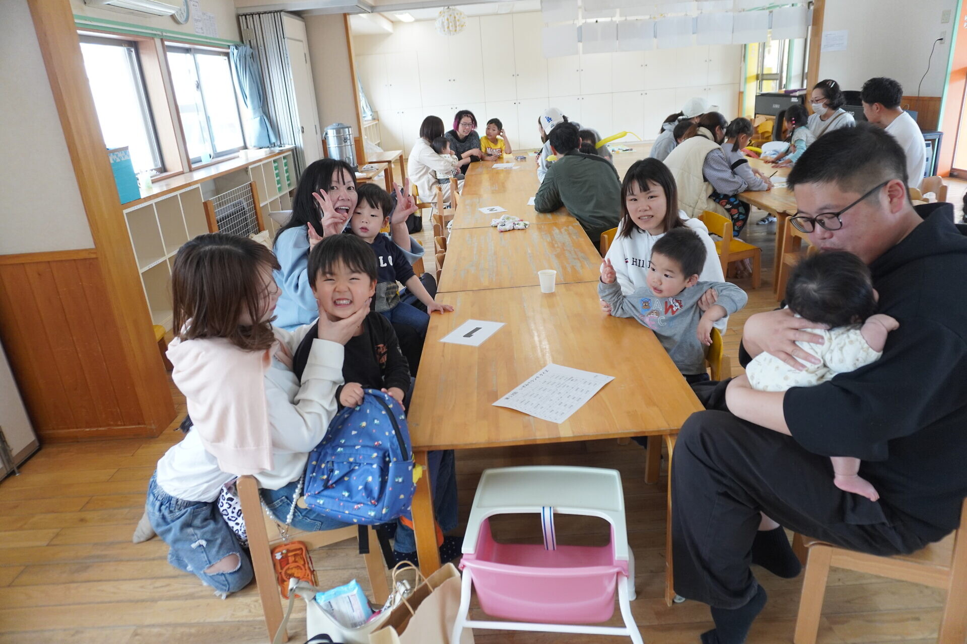 今までは過ごすところが別で顔を合わせることが少なかったおともだちですが来年度からは一緒になります。保護者の方も自分の組の保護者やおこさんの顔を少しでも覚えていただけたらと今回企画しました😁