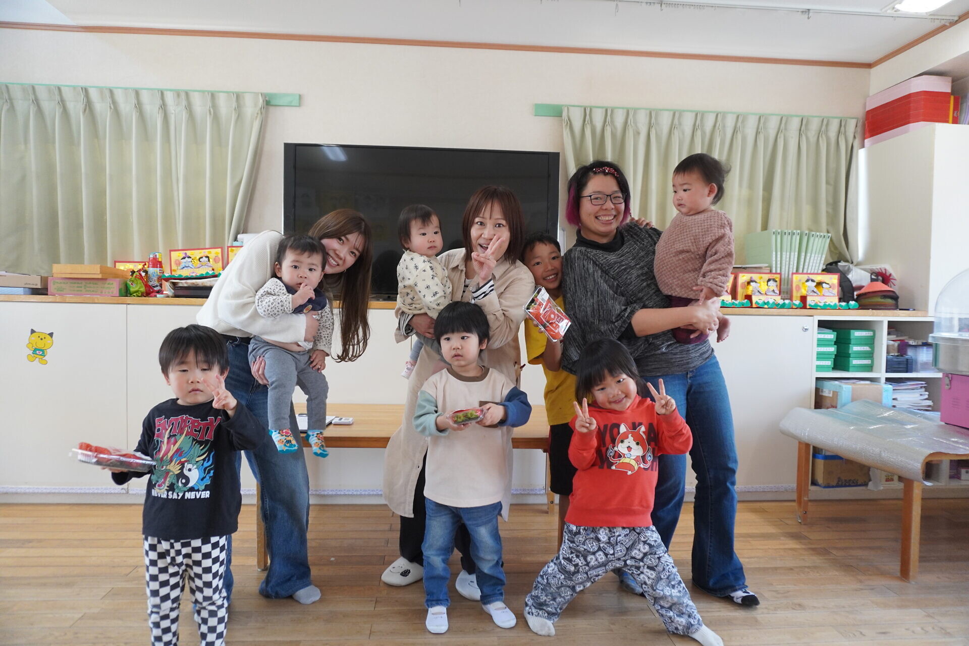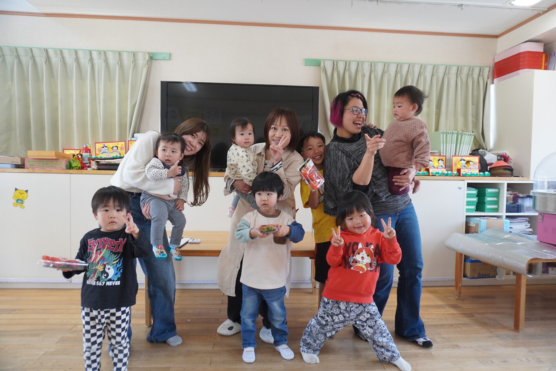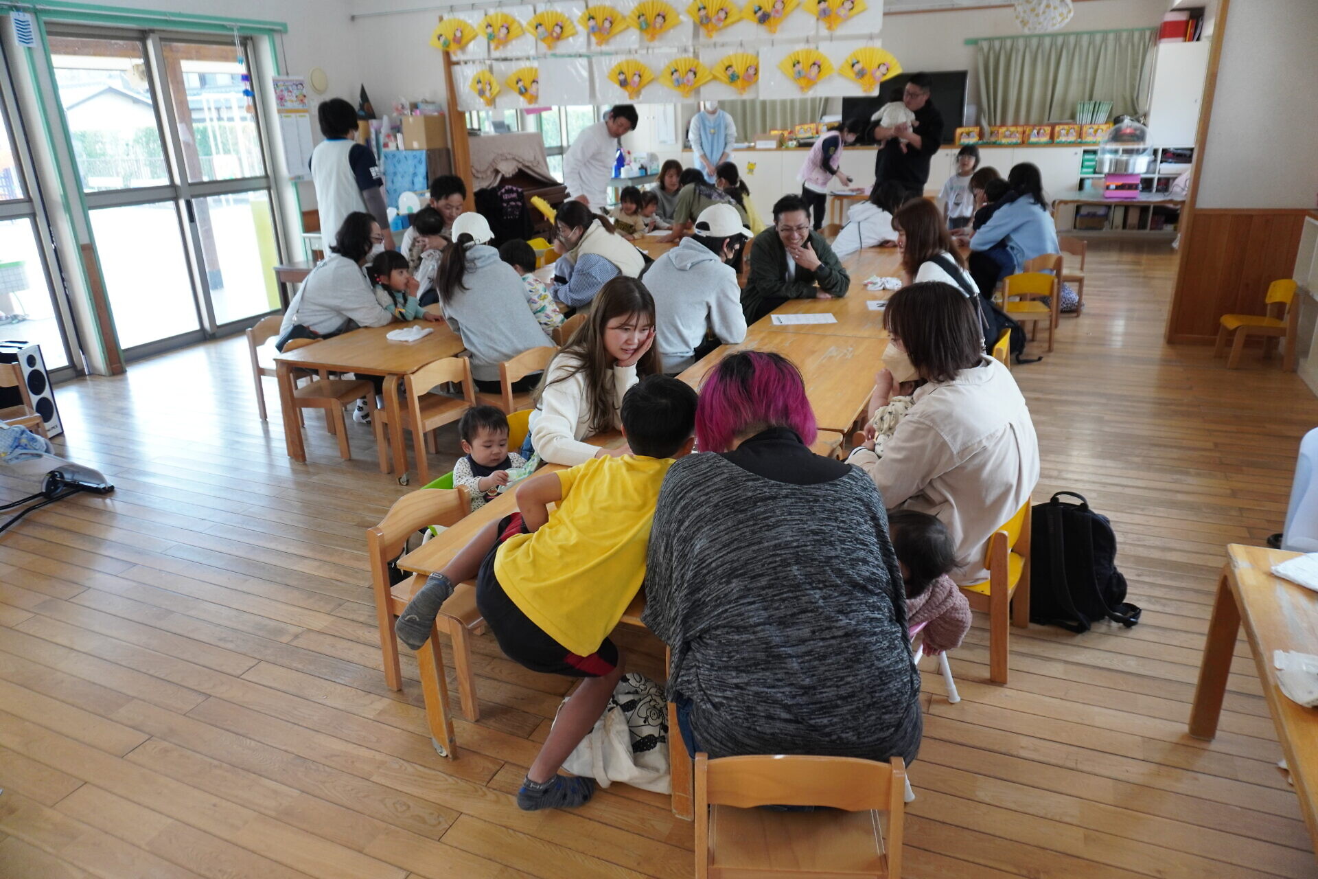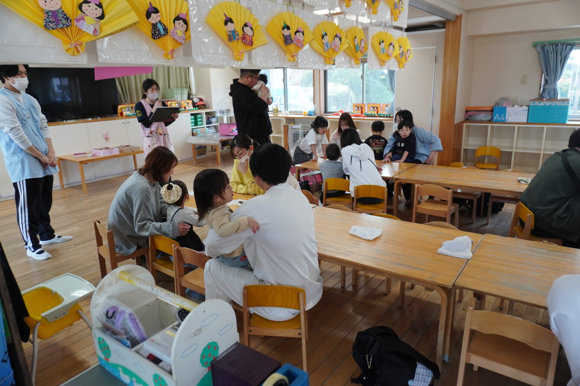 今までは過ごすところが別で顔を合わせることが少なかったおともだちですが来年度からは一緒になります。保護者の方も自分の組の保護者やおこさんの顔を少しでも覚えていただけたらと今回企画しました😁