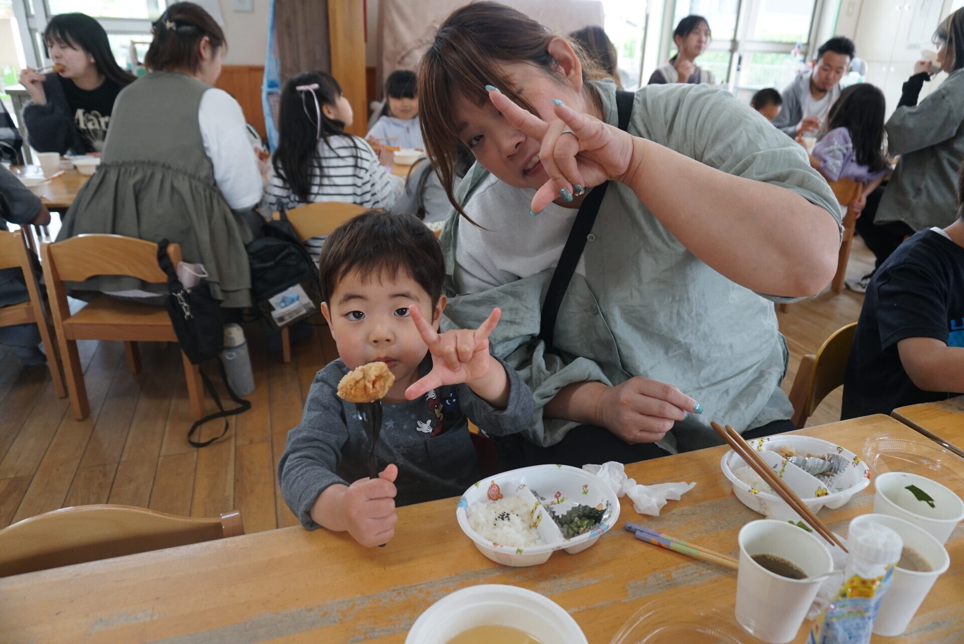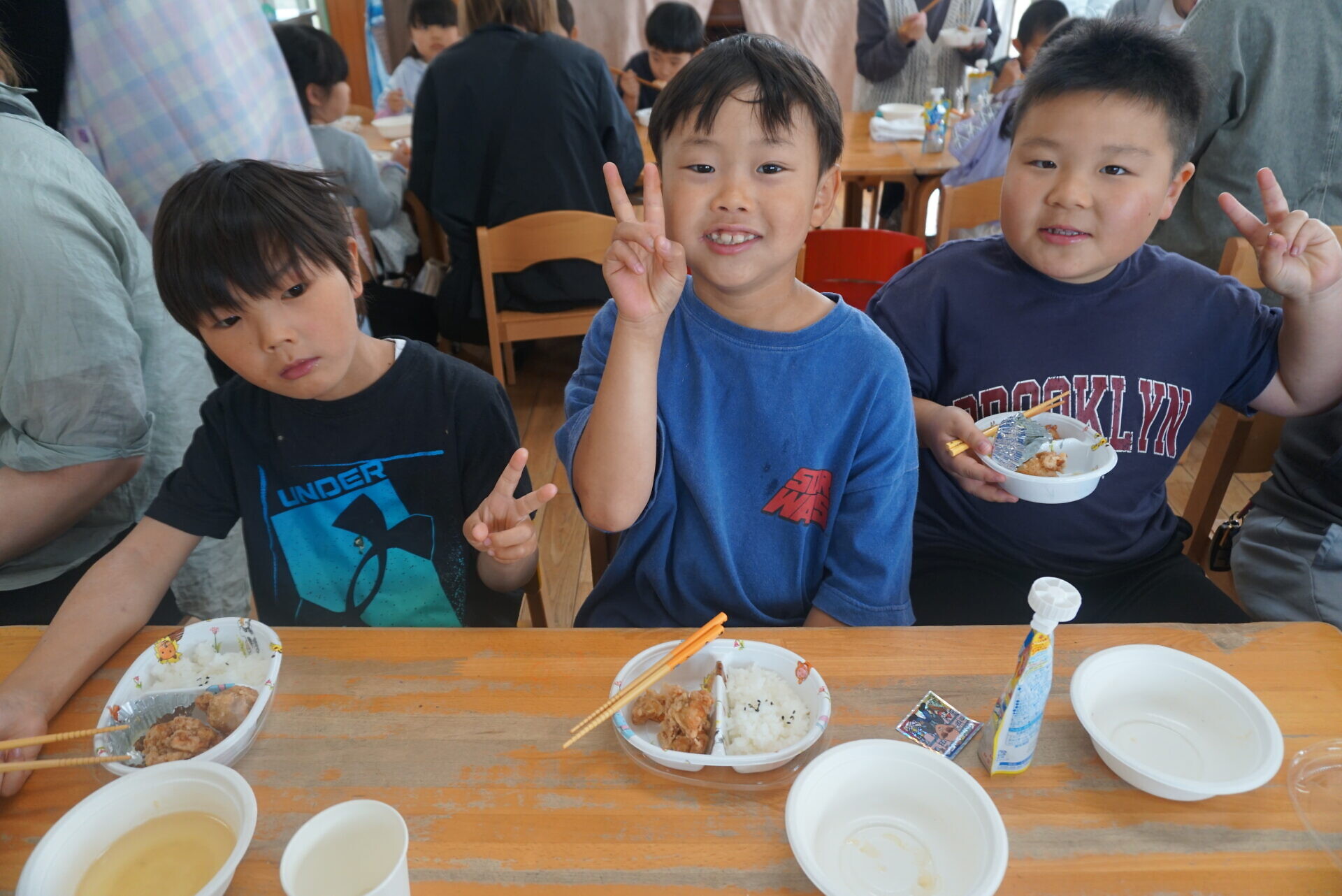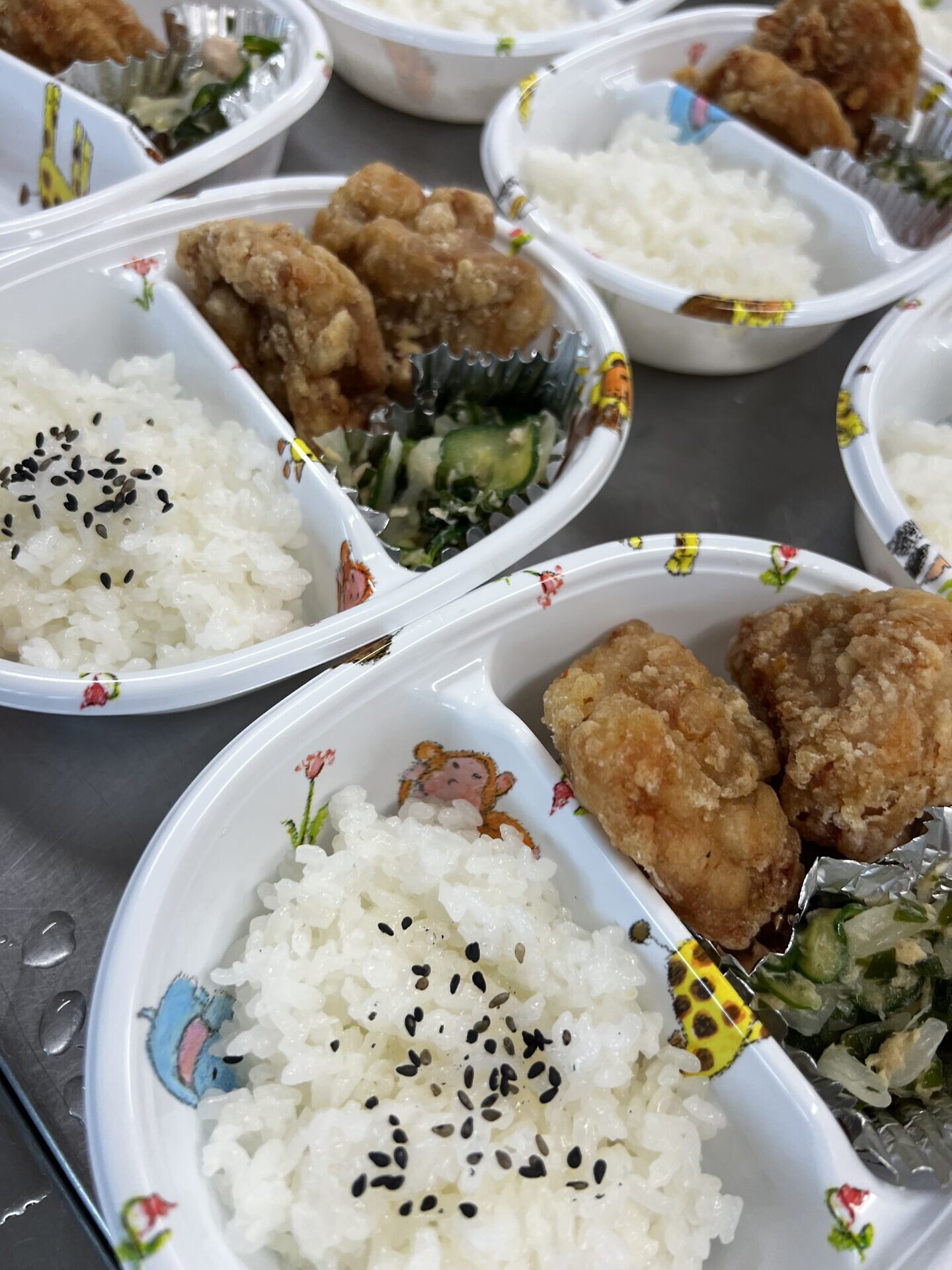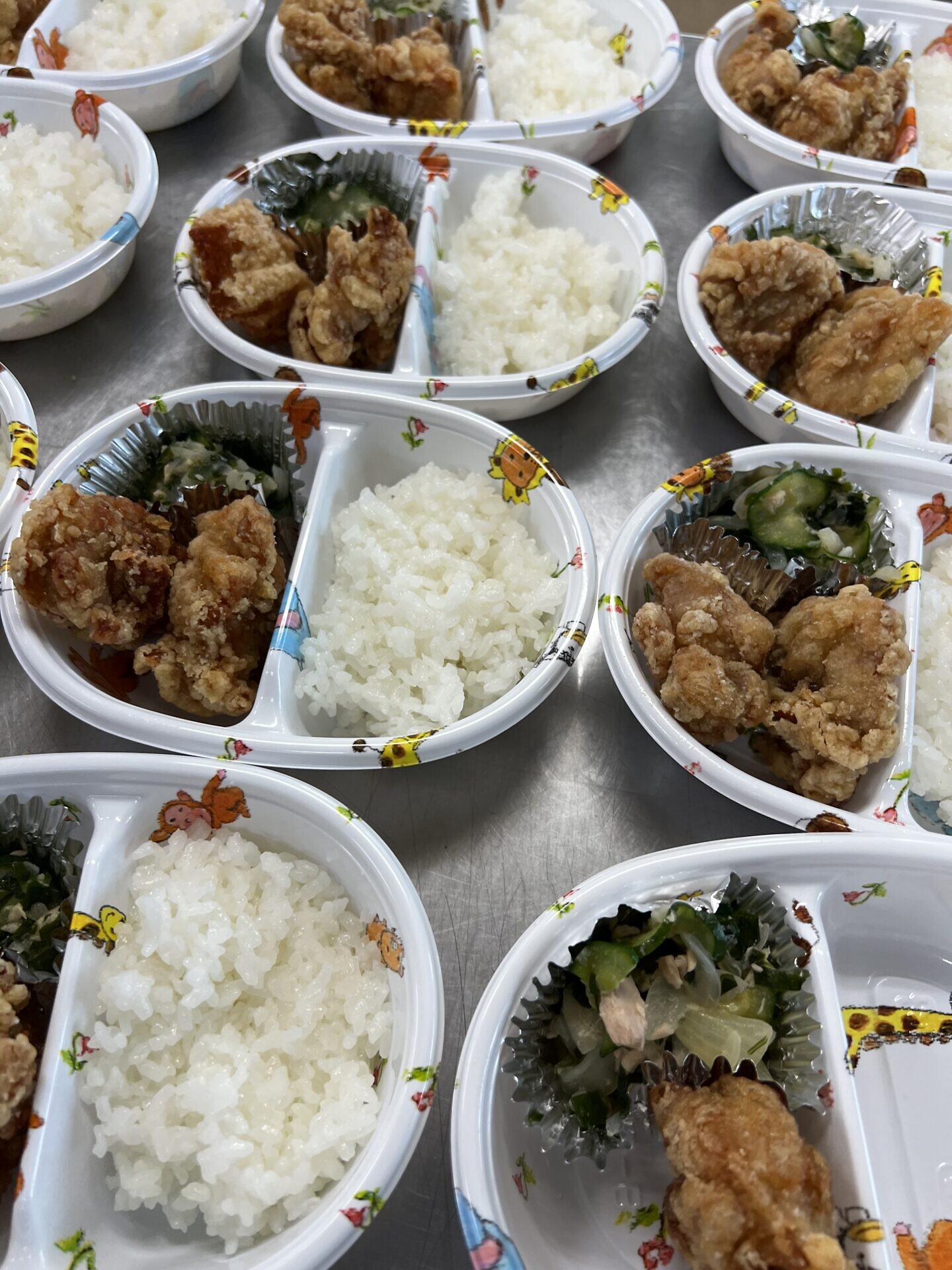 メニューはご飯、唐揚げ、ツナサラダ、卵スープでした!