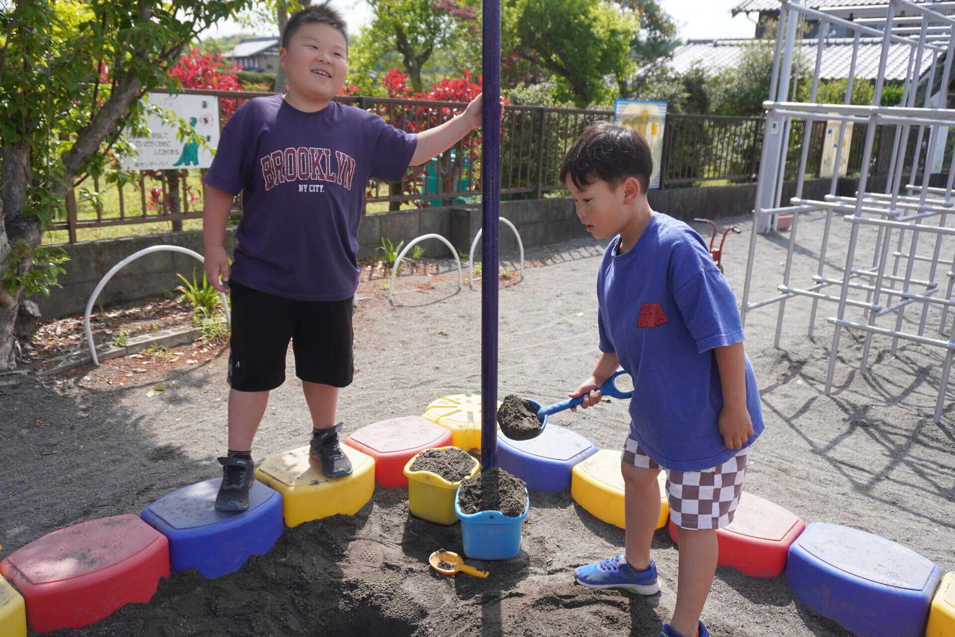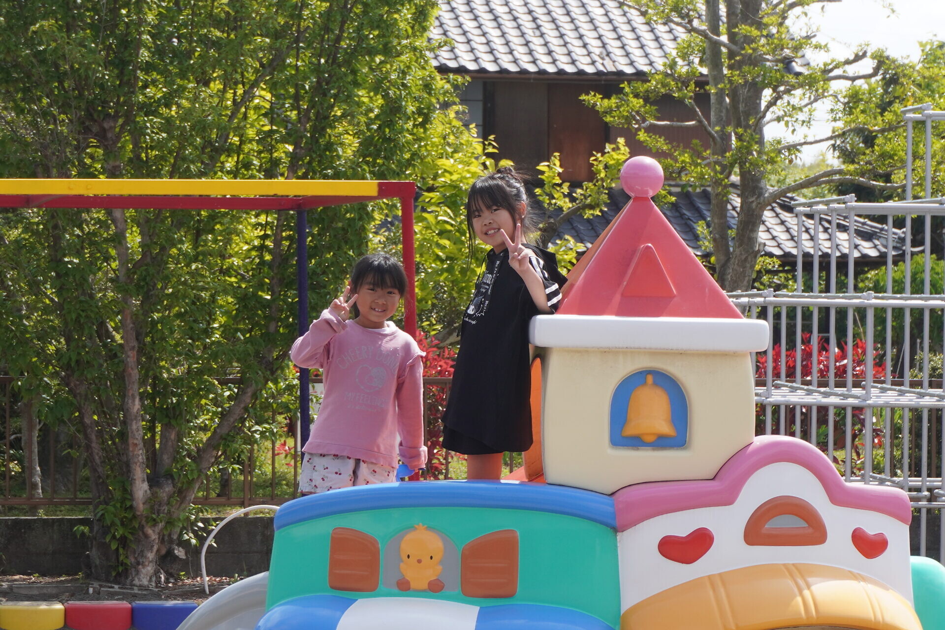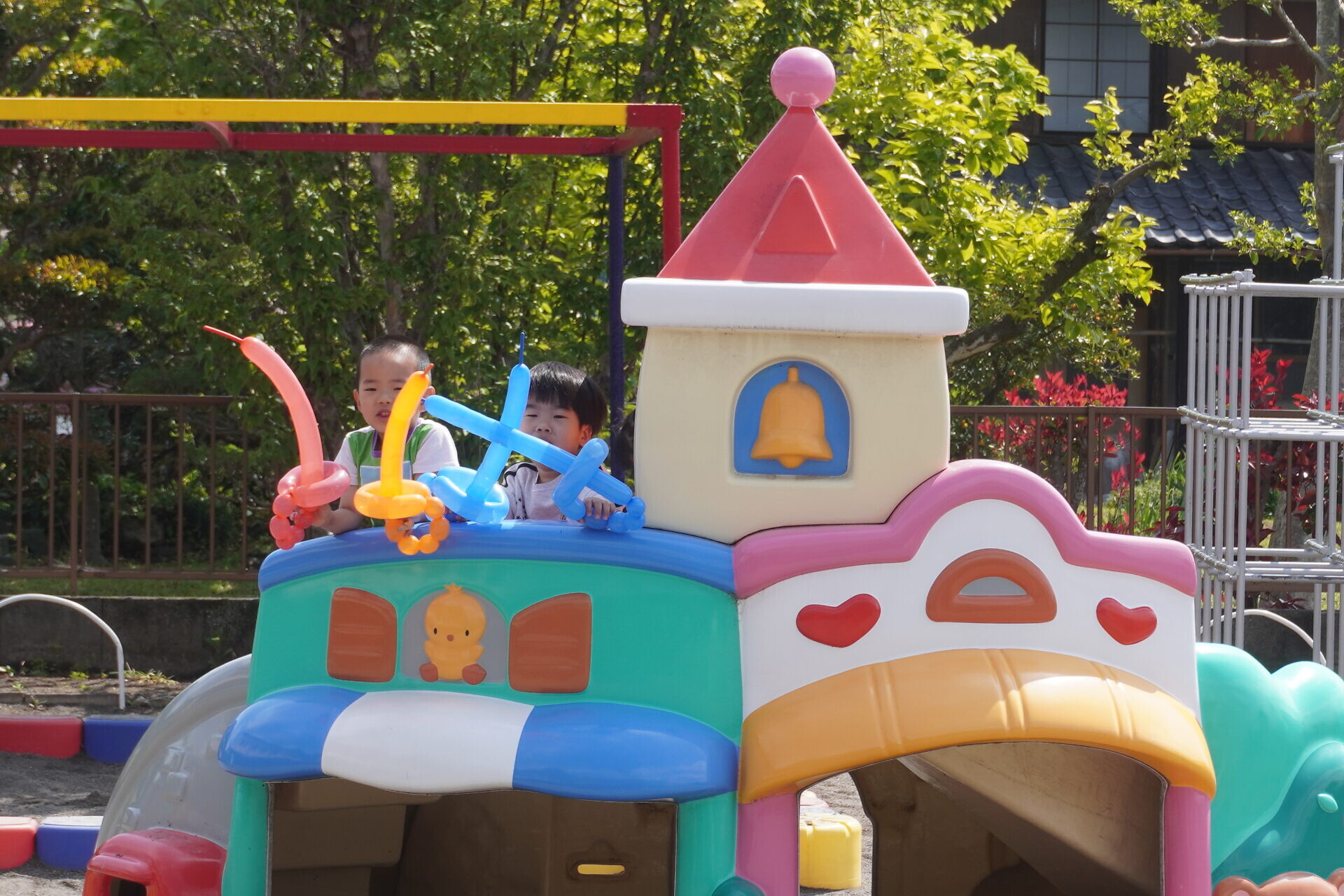 天気予報では前日まで雨で園庭で遊べるか不安でしたが暑いくらいでした!