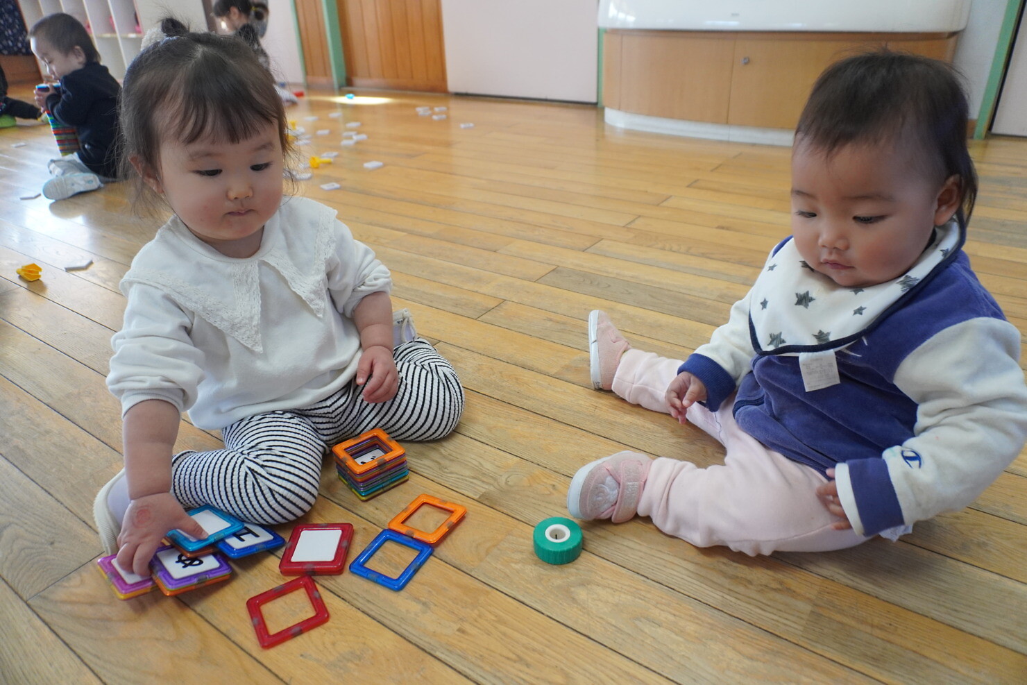今日は室内で遊びました 磁石のブロックを高く積み上げたり、 大工さんになりきりネジをトントンしたり 「かーしてー」と声がして 「いいよー」の声も聞こえ 楽しい声[...]